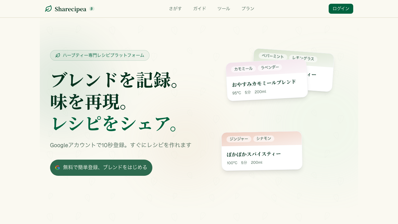 Webアプリハーブティーのブレンドレシピを投稿・共有できるSNSプラットフォーム